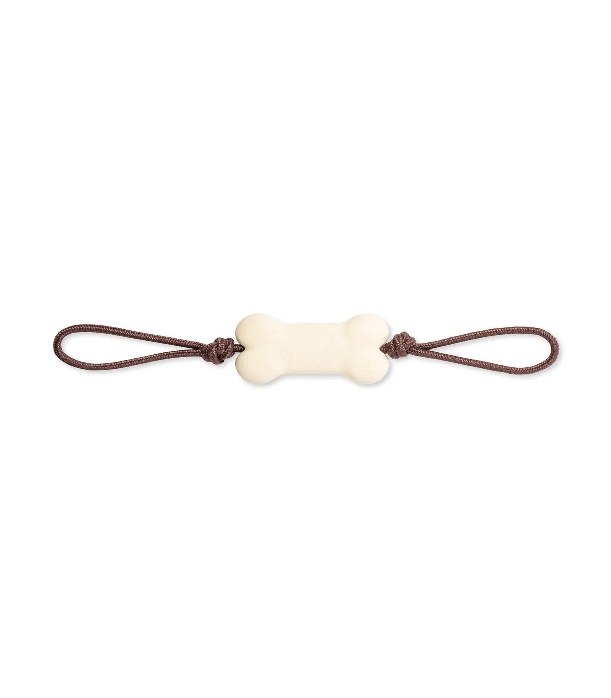 Mordedor para mascotas, con hueso fabricado en resistente material TPR, seguro e inofensivo para la mascota. Cordón en resistente poliéster.