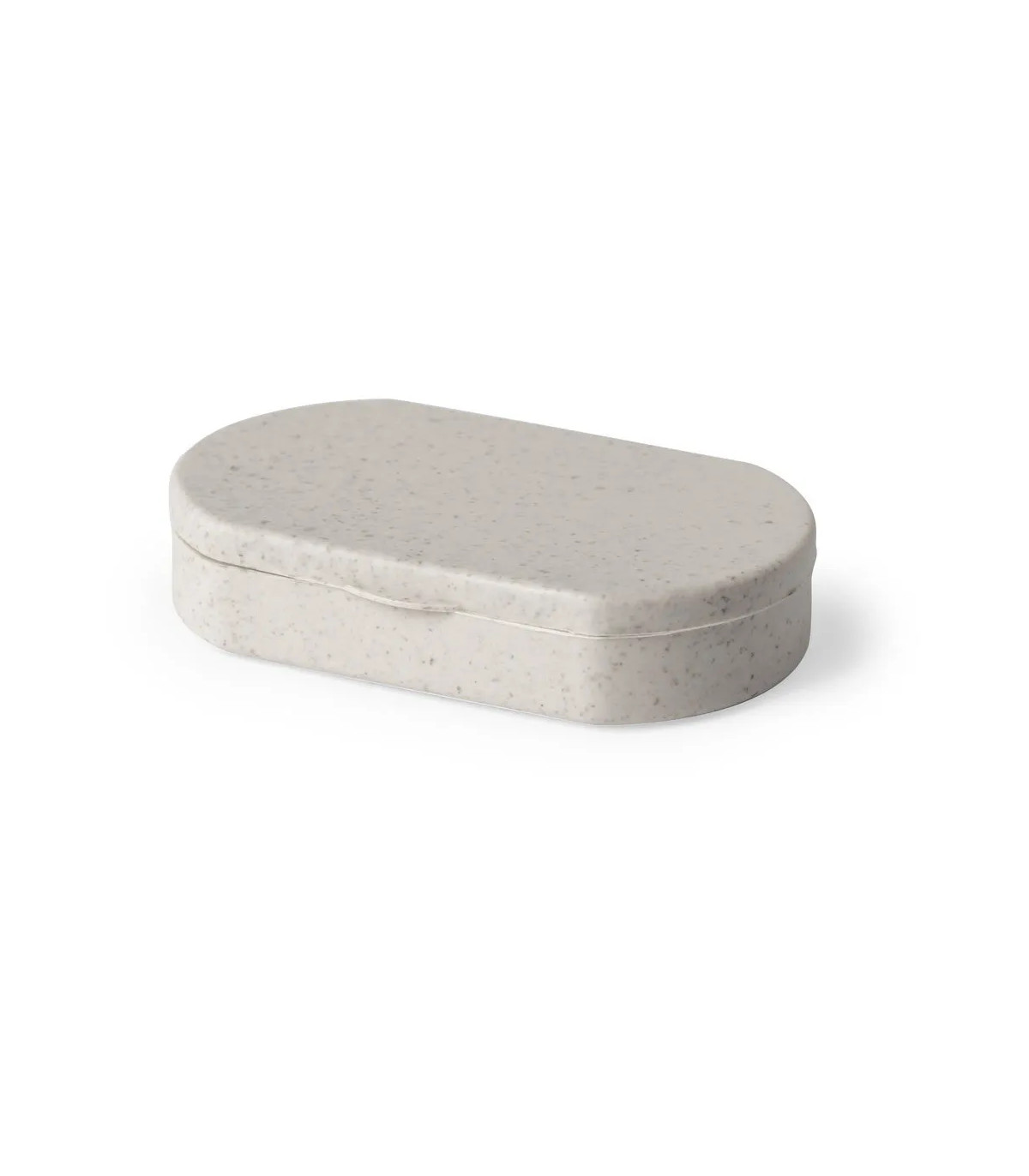 Pastillero en línea nature, fabricado en fibra de bambú. Con 3 compartimentos y cierre de seguridad.