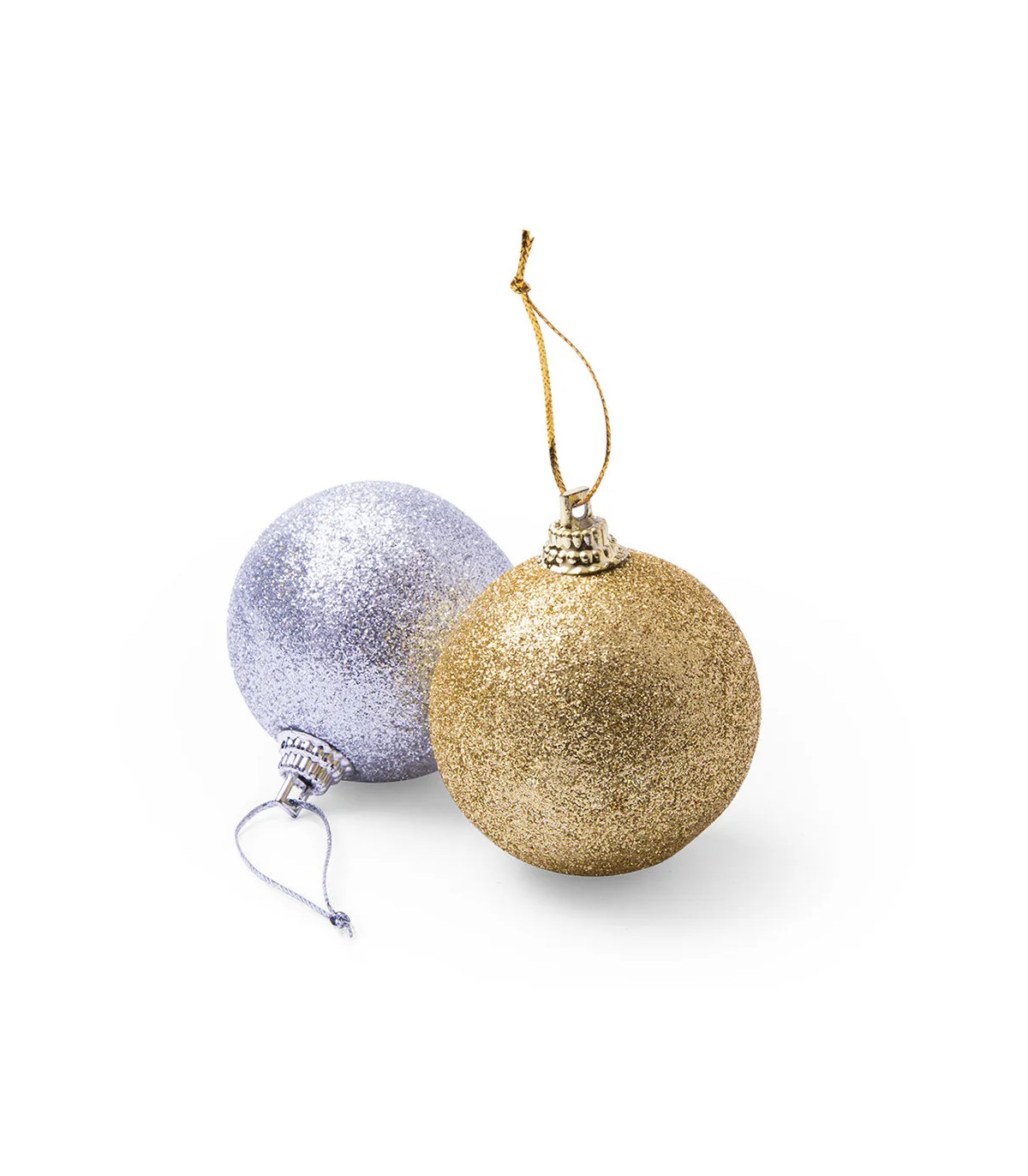 Set de 6 bolas de navidad para colgar en variada gama de vivos colores metalizados. Presentación en bolsita individual con tira de marcaje en color blanco y en colores surtidos.