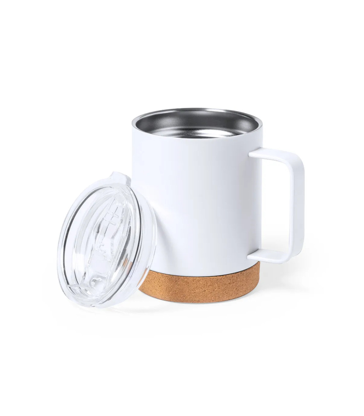Taza térmica de acero inox de doble pared y 330ml de capacidad. Especialmente diseñada para marcaje en sublimación y de acabado en blanco brillo. Con dosificador en tapa, libre de BPA, y base en corcho natural. Presentada en caja individual de diseño kraft.