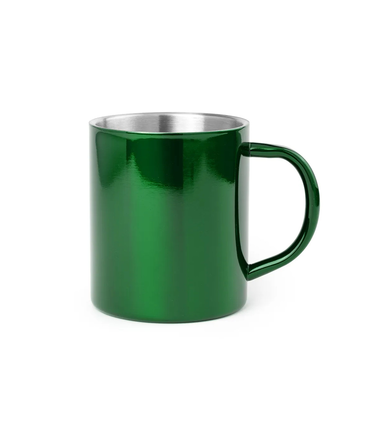 Taza metálica de 380ml de capacidad con diseño vintage y acabado con imperfecciones para mayor sensación retro. En combinación de exterior en variada gama de colores e interior en color blanco con borde negro....