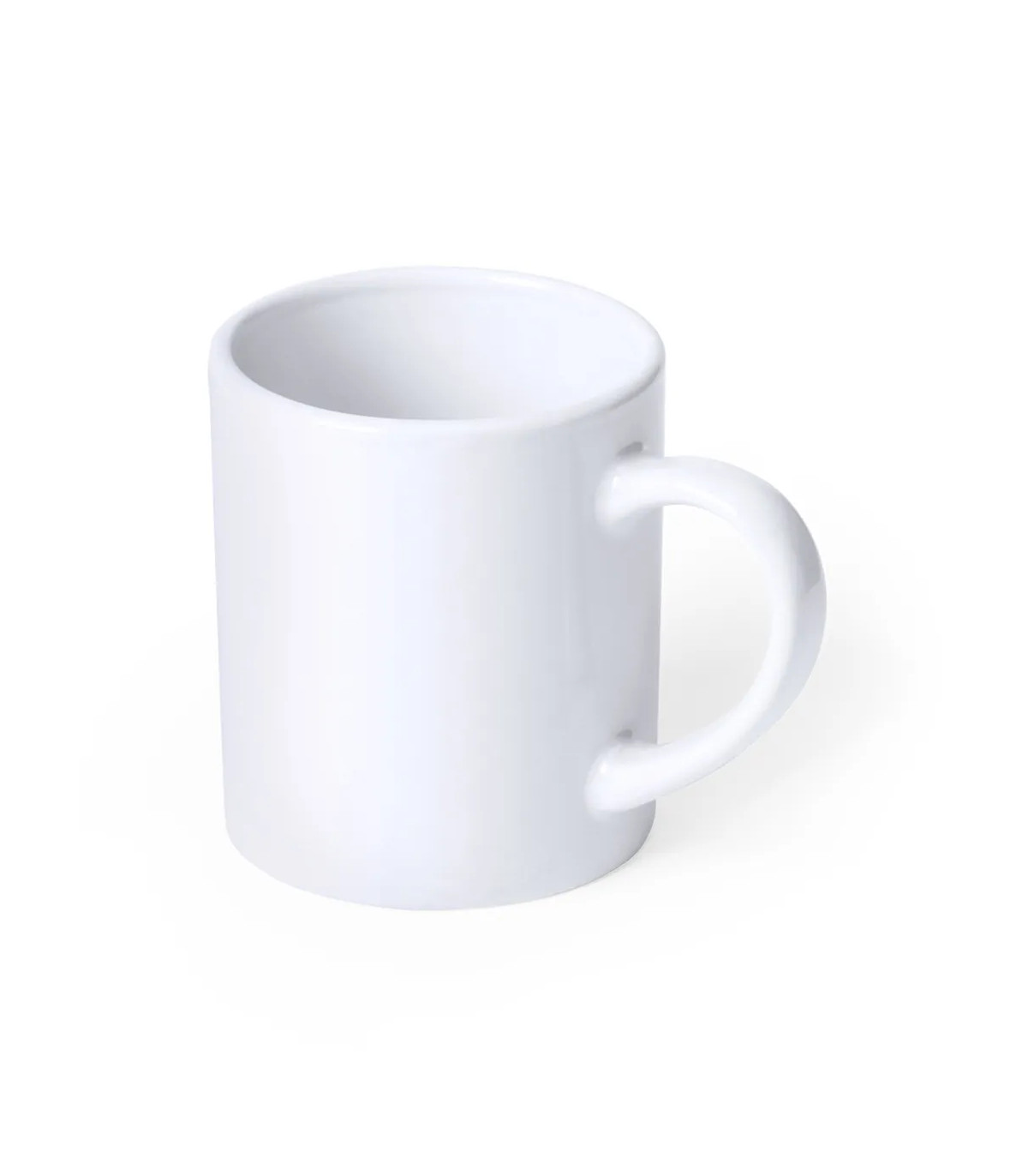Taza de cerámica de 250ml de capacidad en color blanco y especialmente diseñada para marcaje en sublimación. Presentada en caja individual.