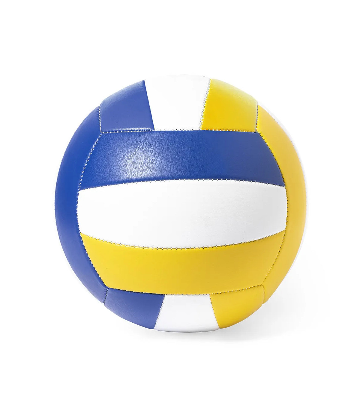 Balón de voleibol en suave polipiel, tamaño 5. De original diseño tricolor y presentado en bolsa individual.