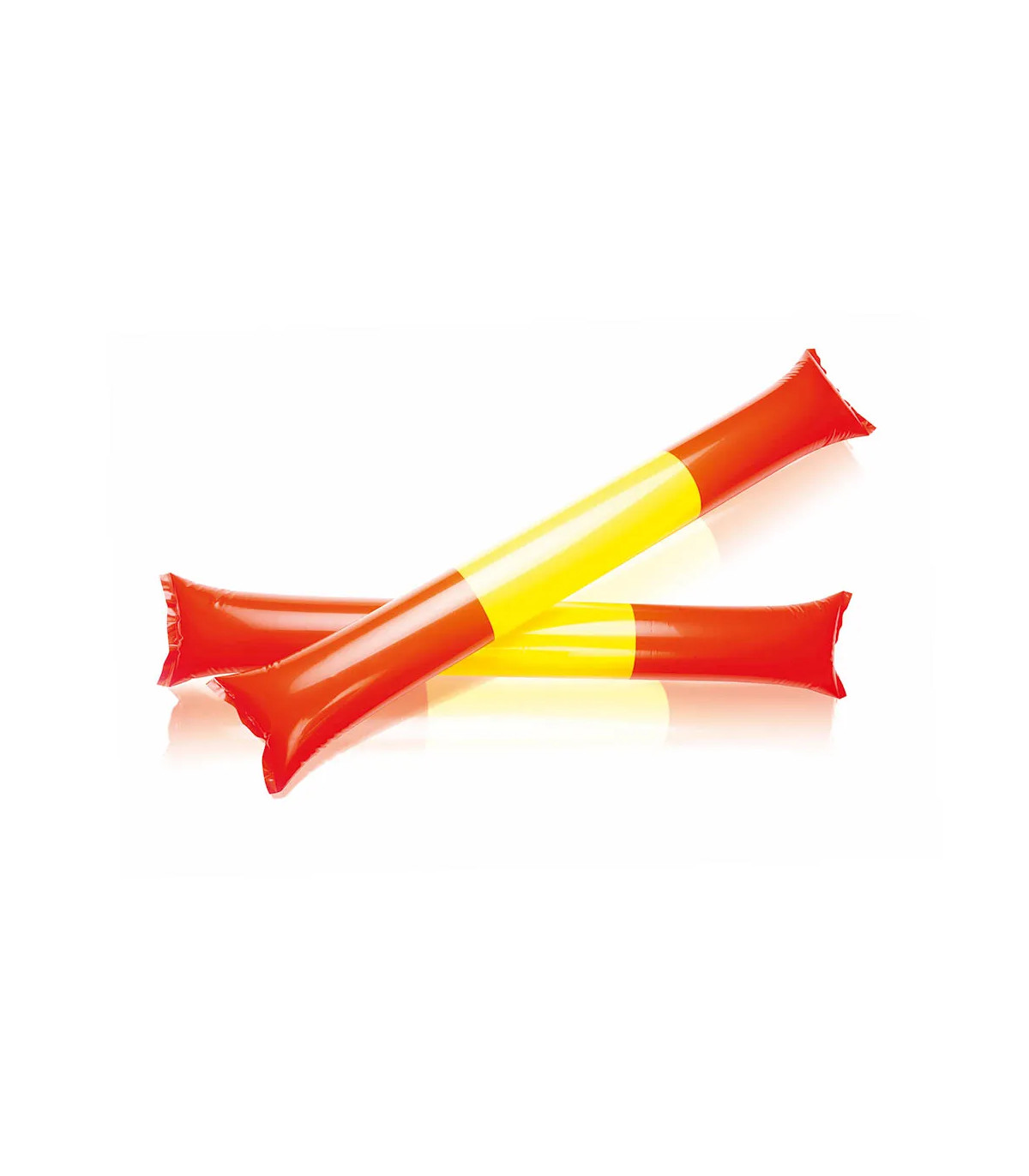 Par de bastom sticks/aplaudidores en resistente y ruidoso material LDPE de diseño España. Reutilizables y con válvula de inflado incluida.