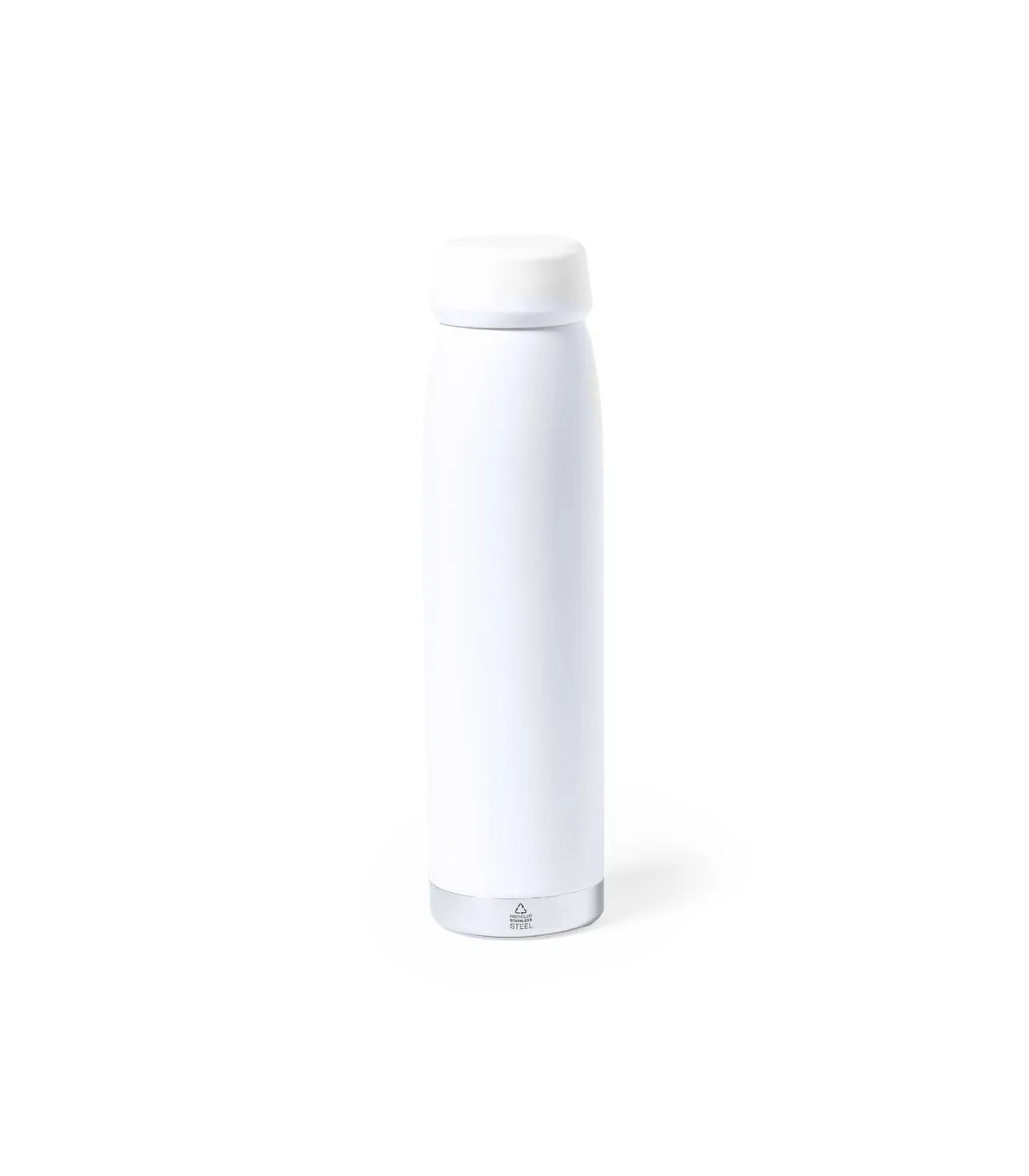 Bidón térmico de 380 ml de capacidad, fabricado en acero inox reciclado de doble pared, con tapón a rosca a juego y base en plata. Disponible en variada gama de colores satinados, libre de BPA y presentado en caja individual de diseño kraft. El acero es uno de los materiales más demandados y que puede encontrarse casi en todas partes, desde productos de uso diario a grandes construcciones. Con innumerables propiedades, entre las que cabe destacar la durabilidad y su alto grado de reutilización, convirtiéndolo en una alternativa muy valorada en soluciones de sostenibilidad. Debidamente tratado, permite obtener nuevos recursos de infinita utilización.