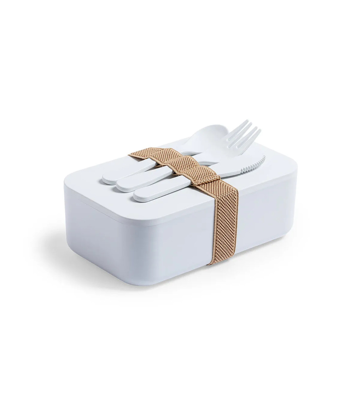 Fiambrera de línea nature, fabricada en PLA 100% compostable libre de BPA. De 1L de capacidad, incluye cinta de seguridad con tenedor, cuchara y cuchillo. Presentada en bolsa individual. Producto fabricado con material PLA, procedente de materias primas r
