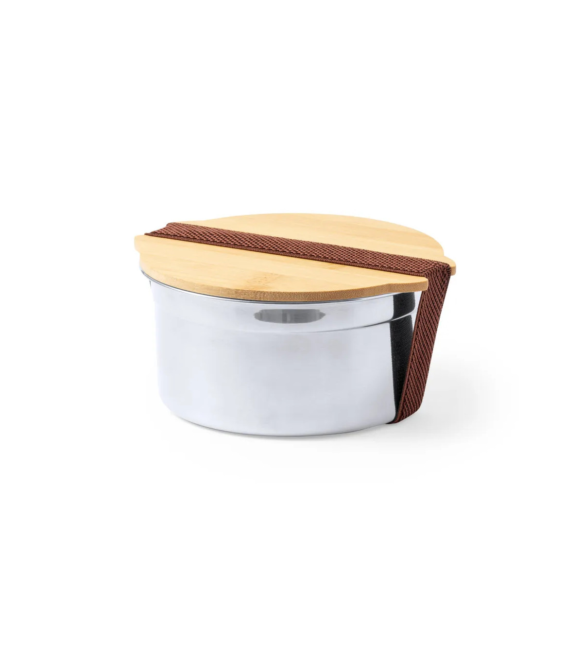 Fiambrera de 800 ml de capacidad fabricada en acero inox. Con tapa hermética en bambú y cinta elástica de cierre. Presentada en caja individual de diseño.