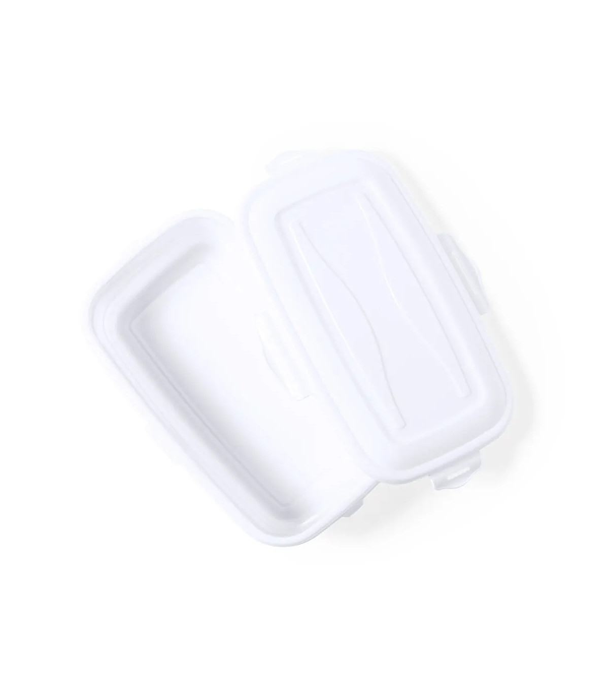 Fiambrera de 1L de capacidad, hecha en PP de color blanco. De fabricación europea y con certificación Food Grade, garantizando la seguridad cuando los alimentos entran en contacto con el material usado para fabricar el producto. Formato rectangular, con c