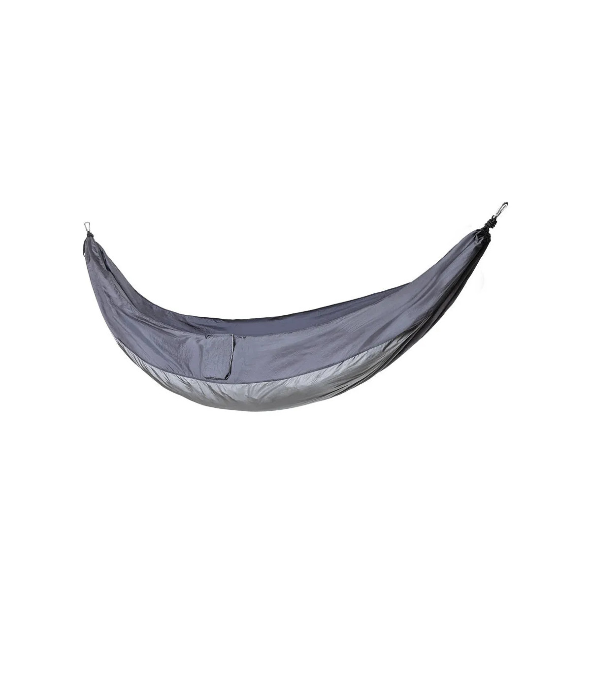 Hamaca fabricada en resistente nylon reciclado de 270x140cm, resultado de la utilización de los desechos pre y post-consumer del nailon, que se reutilizan para obtener este nuevo material, sin alterar sus propiedades y cumpliendo con los principios de las