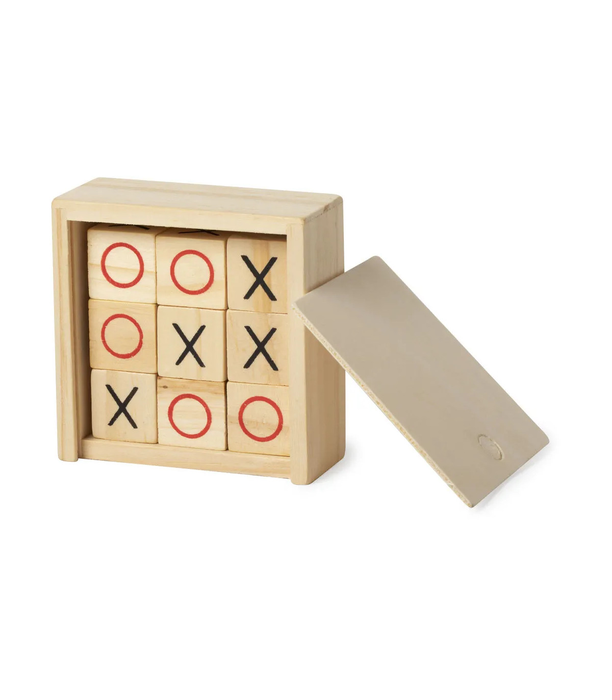 Juego de mesa en madera, presentado en estuche individual con tapa deslizante.