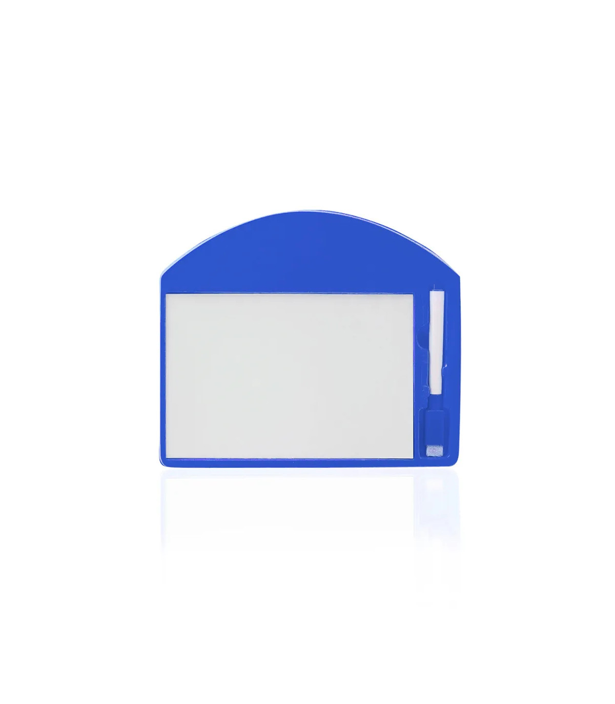 Pizarra en variada gama de vivos colores. Con troquelado para rotulador en marco (rotulador magnético a juego con borrador incluido).