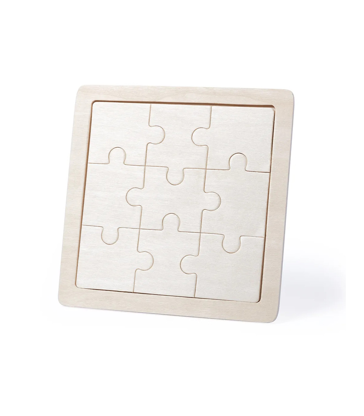 Puzzle de madera con 9 piezas totalmente personalizable para despertar el ingenio y habilidad de los más pequeños.