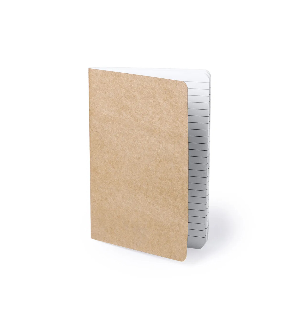 Original libreta con tapas de cartón reciclado y acabado cosido a juego en el lomo. Incluye 60 hojas con disposición a una raya.