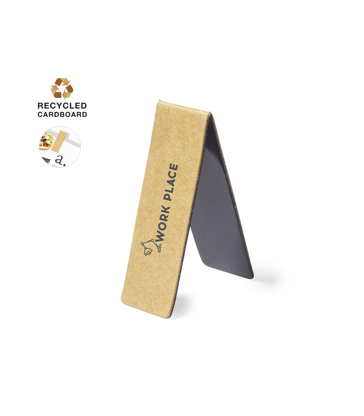 Marcapáginas de línea nature magnético. Fabricado en cartón reciclado, con amplia superficie de marcaje.