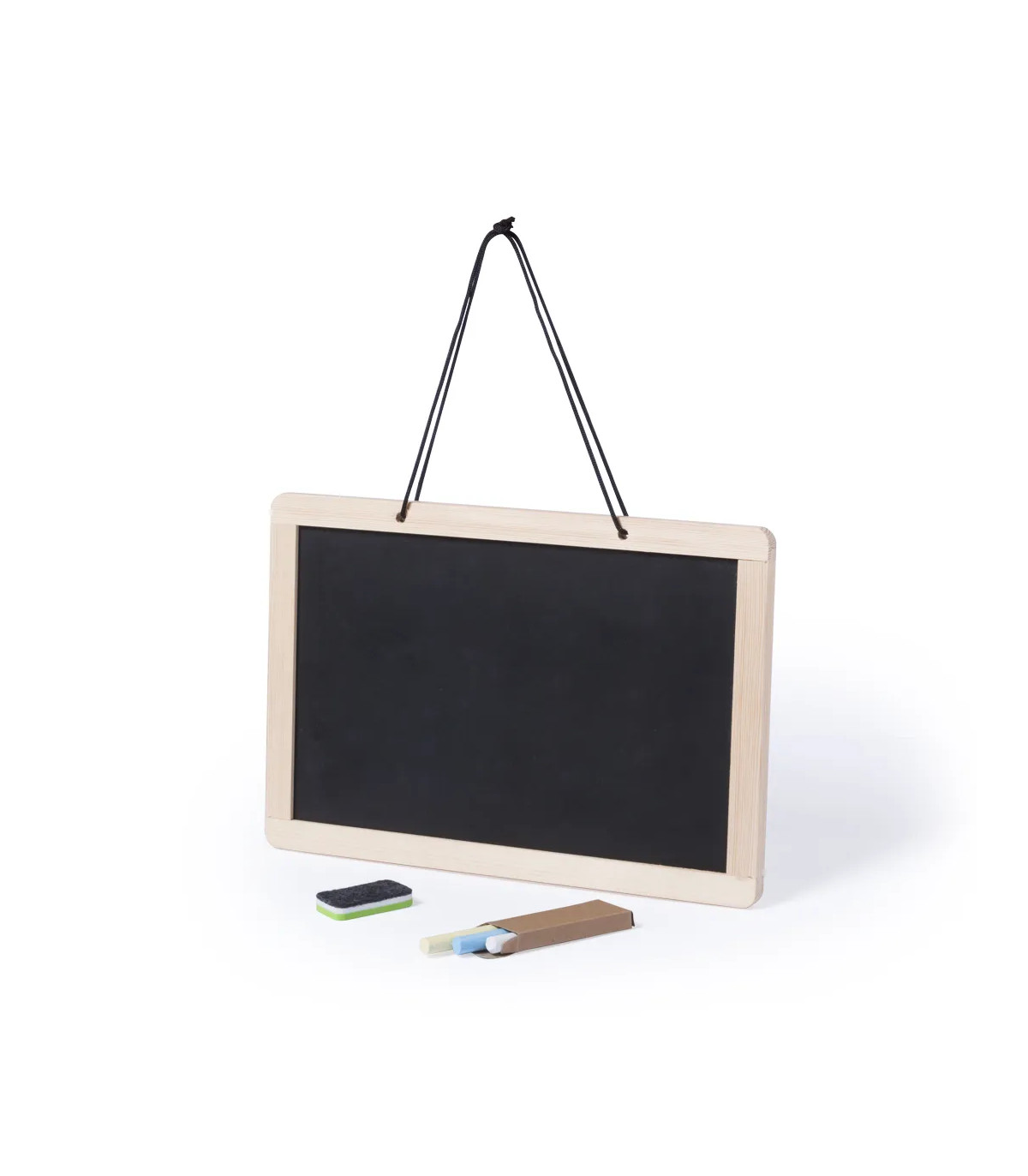 Pizarra para colgar de doble cara. Tradicional pizarra de tiza en una cara con 3 tizas incluidas + pizarra para rotulador en la otra cara -rotulador incluido-. Con borrador de doble cara para tiza o rotulador.