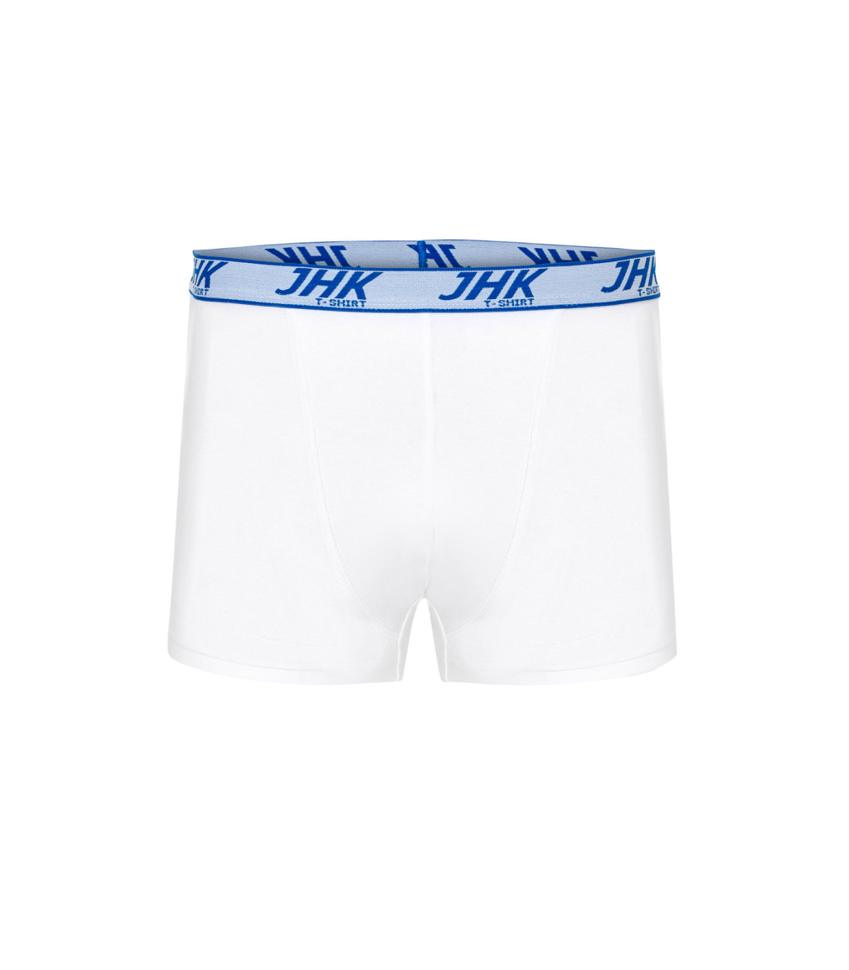 Boxer corto hombre . Costura lateral. Cinturilla elástica con logo JHK.GM: 85%algodón 10%viscosa 5%elastano Elastico: 53%nylon 20%poliester 27% elastano