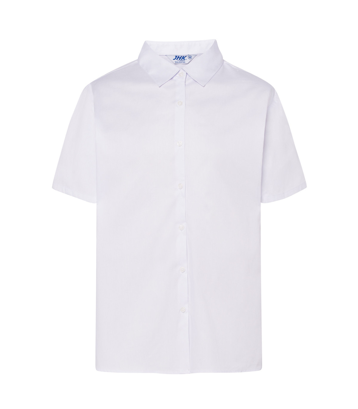 Camisa de trabajo para mujer de manga corta, ligeramente entallada. Disponible en 4 colores y desde la talla XS hasta la 3XL. Camisa laboral de tela Oxford que destaca por su resistencia y grosor. Apta para todas las estaciones del año.Características:Camisa de manga corta.Ligeramente entallada.Botones a tono.Oxford - 60% Algodón / 40% Poliéster