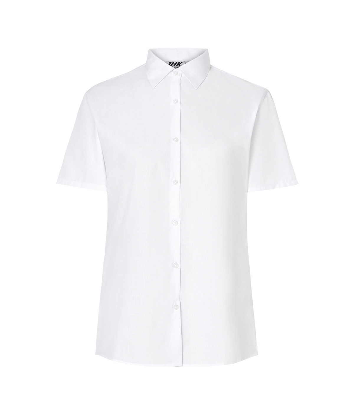 Camisa antiarrugas y antibacterias para mujer de manga corta. Entallada de manga larga, en popelín. Cuerpo ajustado. Botones a tono. Tapetas en mangas con botón y pliegue. Puños con dos botones.