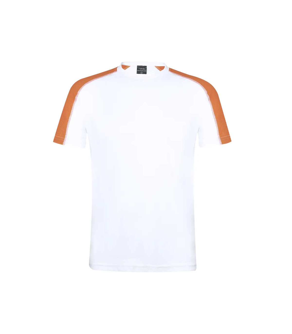 Camiseta técnica para adulto en material dynamic, altamente transpirable y confeccionada en tela 100% poliéster de 135g/m2. Original diseño en color blanco, con franja de color en las mangas. Disponible en variados colores y en tallas S, M, L, XL, XXL.