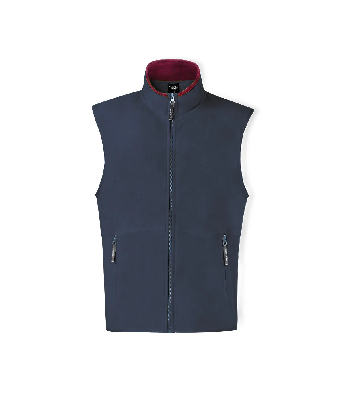 Chaleco en cálido y suave polar fleece de 280g/m2 con tratamiento anti-pilling. Con cuello de interior en color, cierre de cremallera con cinta en tirador, bolsillos laterales de cremallera y cintura elástica. Disponible en tallas M, L, XL, XXL.