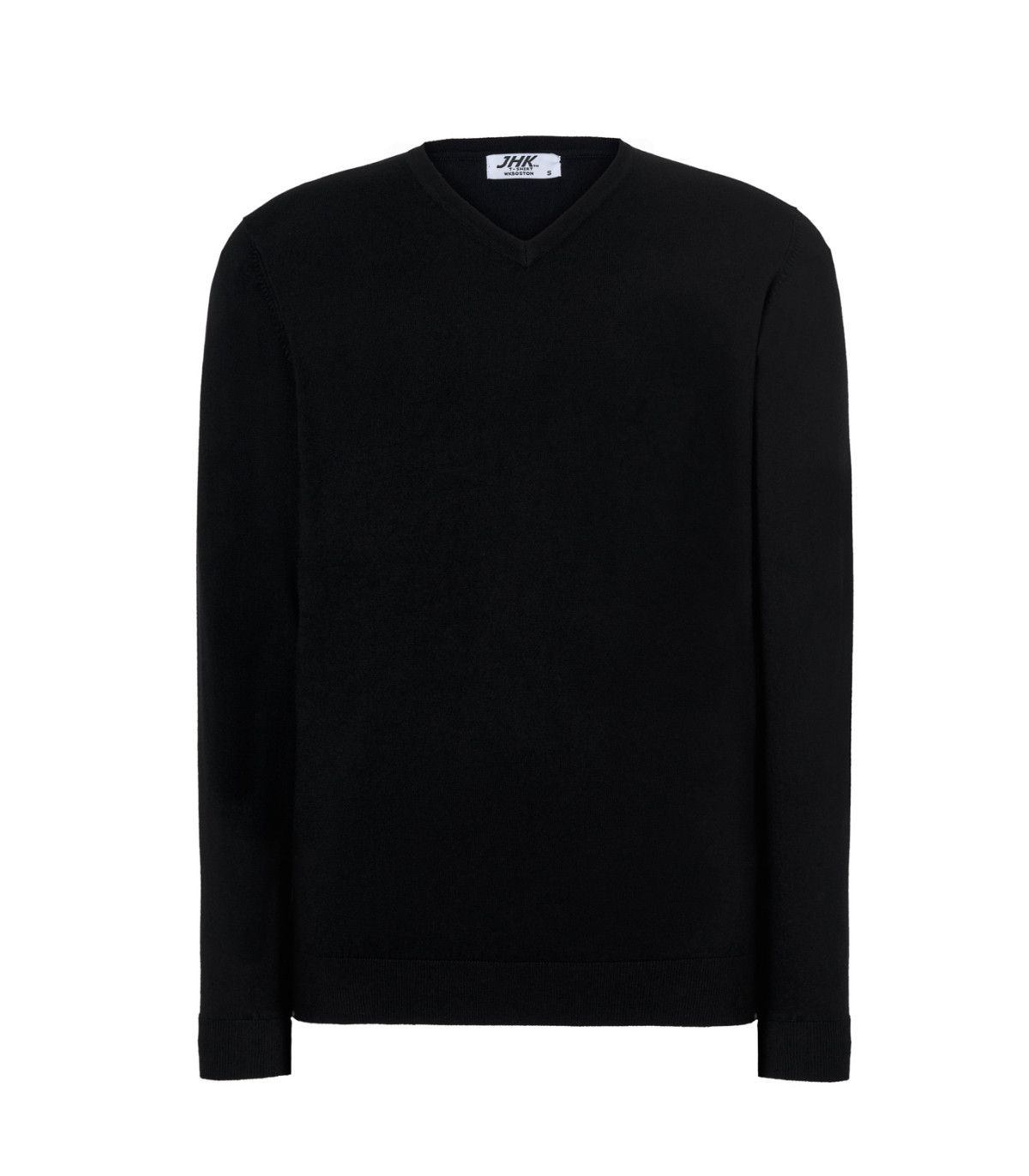 Jersey de hombre de cuello pico. Corte entallado. Canalé en cuello, puños y bajo. Tacto suave.