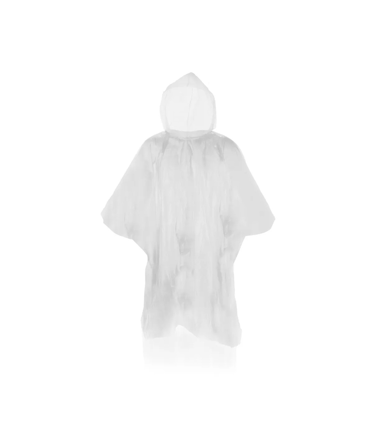 Poncho de HDPE en vivos colores y acabado termosellado. Presentado en bolsa individual transparente. Talla única para adulto en medidas 127x102cm.