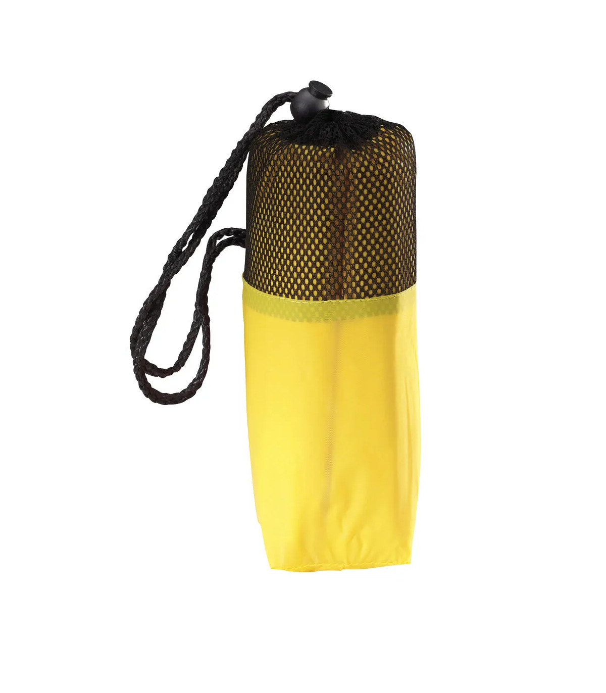 Poncho en resistente PEVA de acabado termo sellado en variada gama de colores. Con cierres laterales de corchete y presentado en bolsa individual a juego con parte superior en redecilla y cordón con accesorio de ajuste. Talla única para adulto.