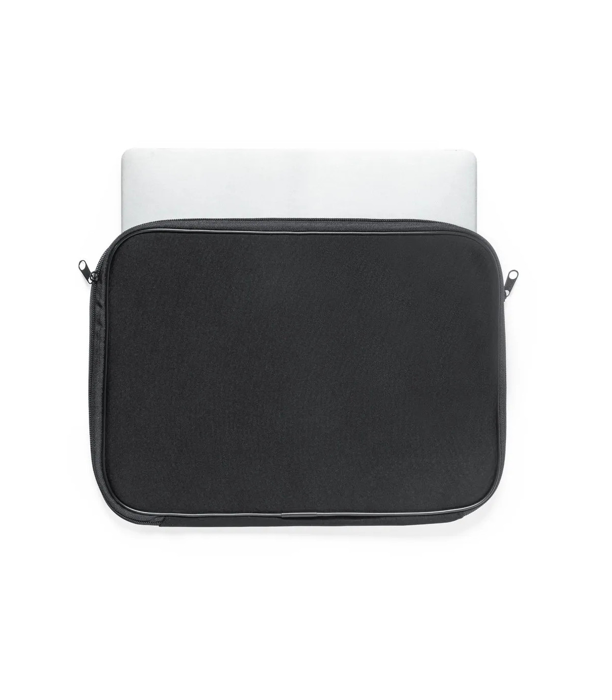 Funda para ordenador portátil, fabricada en resistente soft shell. En elegante color negro, con interior acolchado. Cierre de cremallera a juego con doble tirador. Para ordenador portátil o tablet de hasta 13 pulgadas.