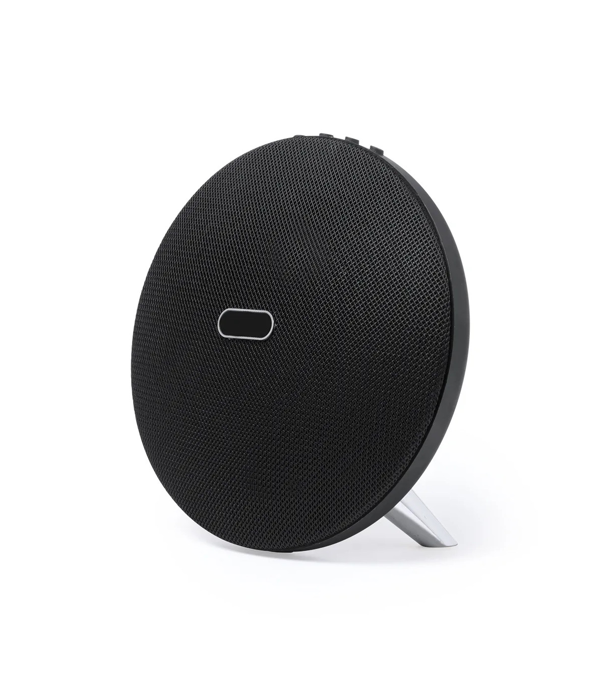 Altavoz de conexión Bluetooth® en elegante acabado de color negro con accesorioss en plateado y original diseño circular. Ofrece 8W de potencia, tiene función de manos libres, una ranura para tarjetas micro SD de hasta 32 GB de capacidad y entrada auxiliar de línea mediante conexión jack de 3,5mm. Compatible con iOS y Android, incluye cable de carga mini USB, cable auxiliar jack de 3,5mm y viene presentado en atractiva caja de diseño. Con soportes de goma antideslizantes en la base.