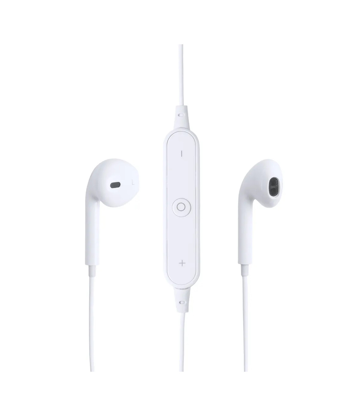 Auriculares intraurales de conexión bluetooth y diseño minimalista en elegante color blanco. De diseño ergonómico, incluyen panel de control integrado en cable y ofrecen función manos libres. Recargables mediante cable mini USB -incluido-. Presentados en resistente estuche individual de polipiel a juego con cierre de cremallera.