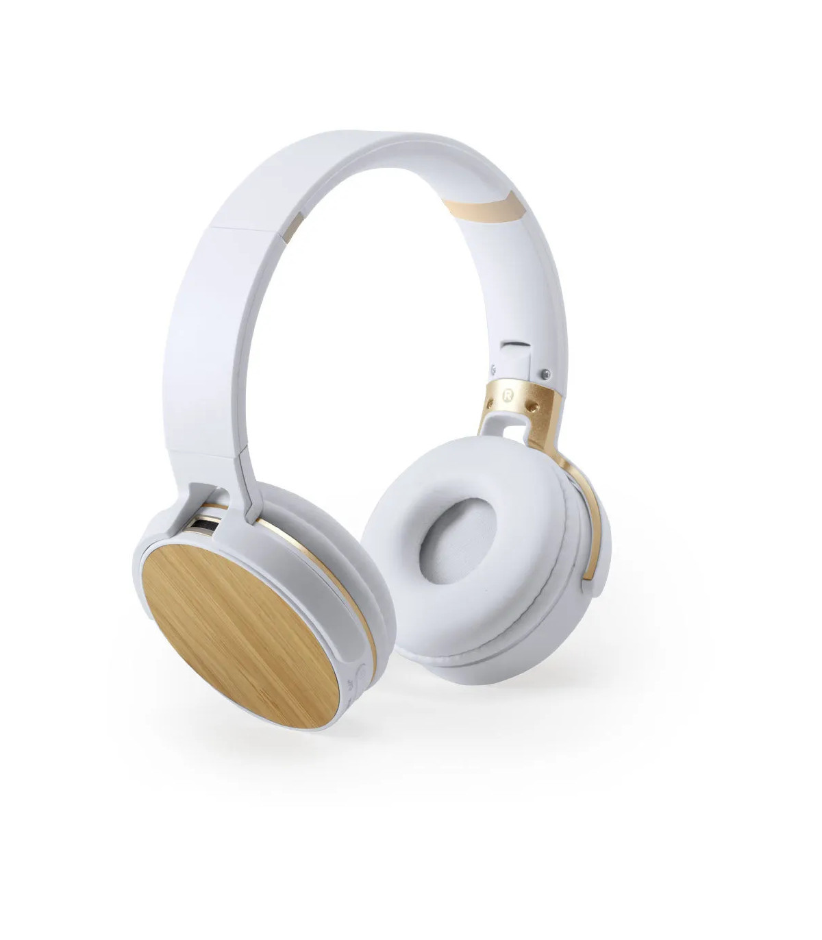 Auriculares de línea nature. Diseño plegable de diadema, con conexión Bluetooth® 5.0 y detalles en bambú procedente de cortes naturales. Con ranura para tarjeta micro SD -tarjeta no incluida-, función manos libres, radio FM, entrada de línea -cable mini jack de 3,5mm incluido- y recargables mediante cable micro USB -incluido-. Con cómodas almohadillas en polipiel de color blanco y presentados en atractiva caja de diseño eco.