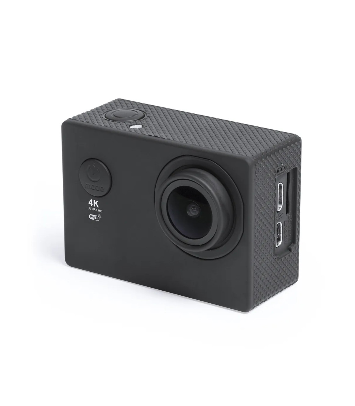 Cámara deportiva de alta calidad de captura de vídeo HD 4K, de diseño compacto y resistente, especialmente diseñada para uso intensivo. Incluye carcasa sumergible hasta 30m de profundidad y multitud de accesorios para ajuste en casco, manillar o cinturón, así como correas ajustables para cabeza y torso o un adaptador giratorio de 360º. La versatilidad y resistencia de esta cámara deportiva la convierten en el gadget perfecto para capturar, con una calidad excepcional, cualquier actividad deportiva. Con función cámara de fotos Full HD 1080p, ranura para tarjetas micro SD de hasta 64 GB de capacidad, pantalla LCD de 2 pulgadas, sistema multilenguaje, y recargable mediante cable mini USB -incluido-. Presentada en atractiva caja de diseño.