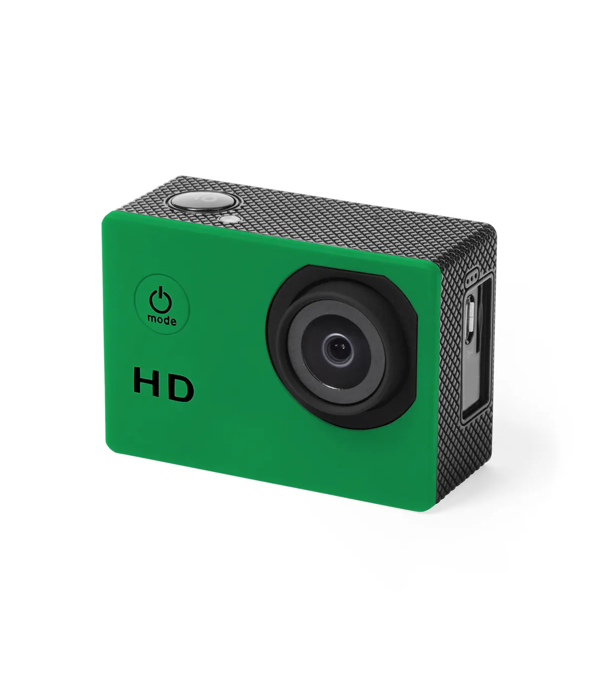 Cámara deportiva de alta calidad de captura de vídeo HD 720p, de diseño compacto y resistente, especialmente diseñada para uso intensivo. Incluye carcasa sumergible hasta 30m de profundidad y multitud de accesorios para ajuste en casco, manillar o cinturó