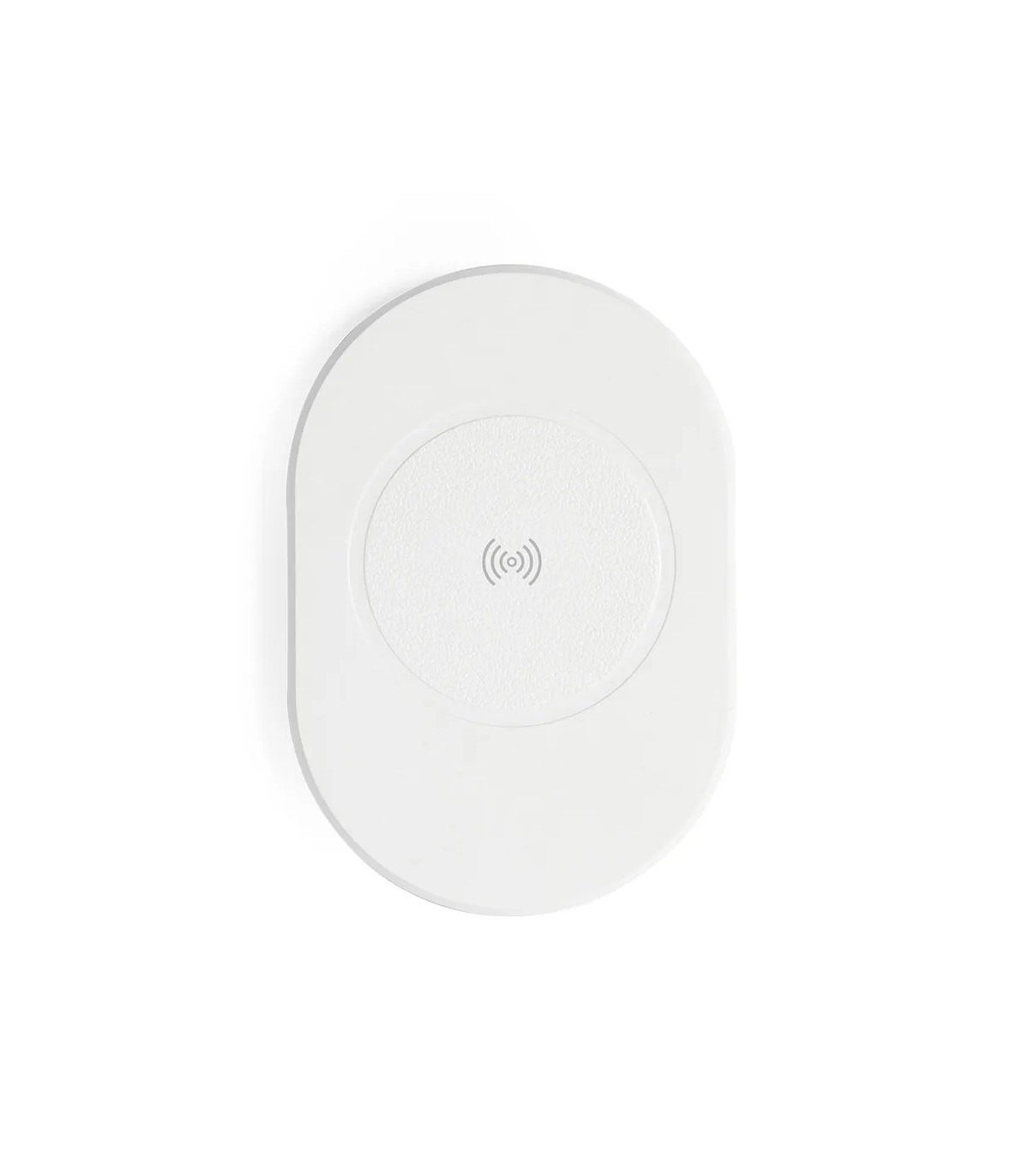Cargador inalámbrico 10W de línea nature, con práctico diseño ovalado. Carcasa en ABS reciclado (RABS) y con certificación RCS, que garantiza el origen reciclado del mismo. Cable de carga incluido, base antideslizante y compatible con dispositivos equipad