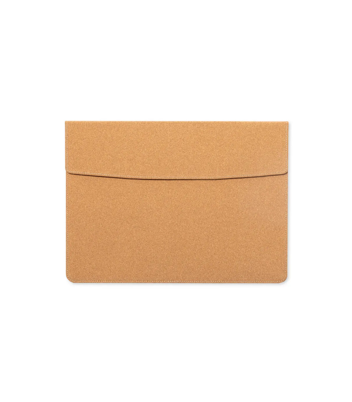 Resistente funda para ordenador portátil de calidad premium fabricada en corcho, favoreciendo el uso de materiales naturales. Compartimento principal con cierre magnético de solapa e interior acolchado. Para ordenador portátil o tablet de hasta 14 pulgadas.