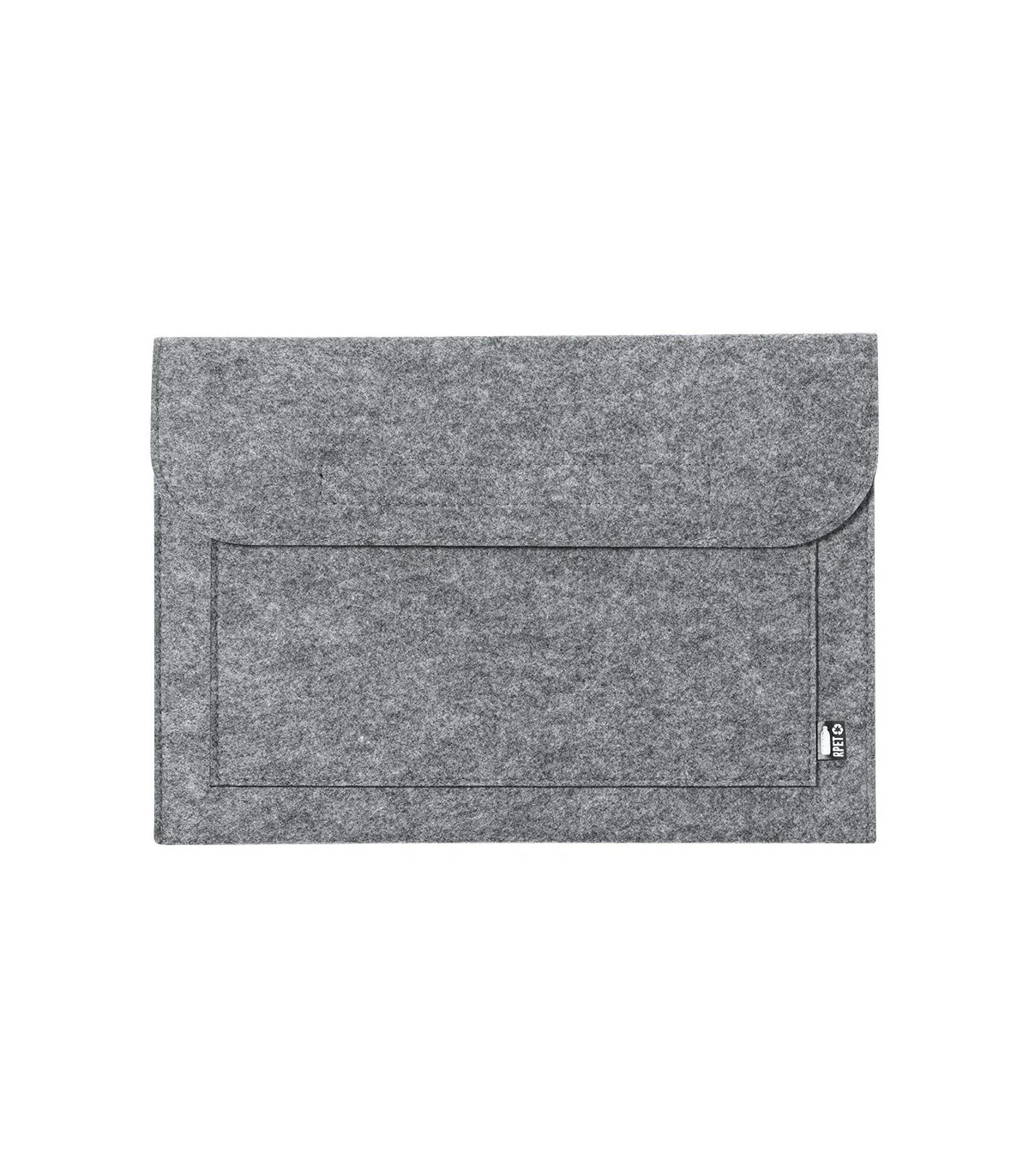 Funda para ordenador portátil de línea nature y en resistente fieltro RPET reciclado, fruto de la combinación del proceso de reciclaje de materiales plásticos junto con la técnica milenaria de fabricación del fieltro, dando como resultado un material de e