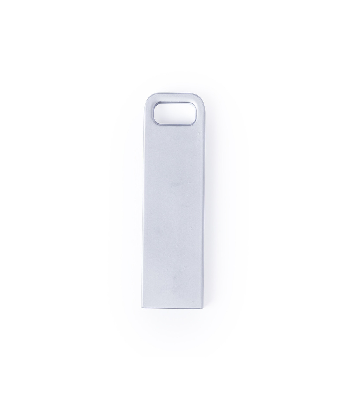 Memoria USB de 16GB de capacidad, de acabado metálico en mate y diseño minimalista, diseñada para llevar en el llavero. Presentada en estuche individual