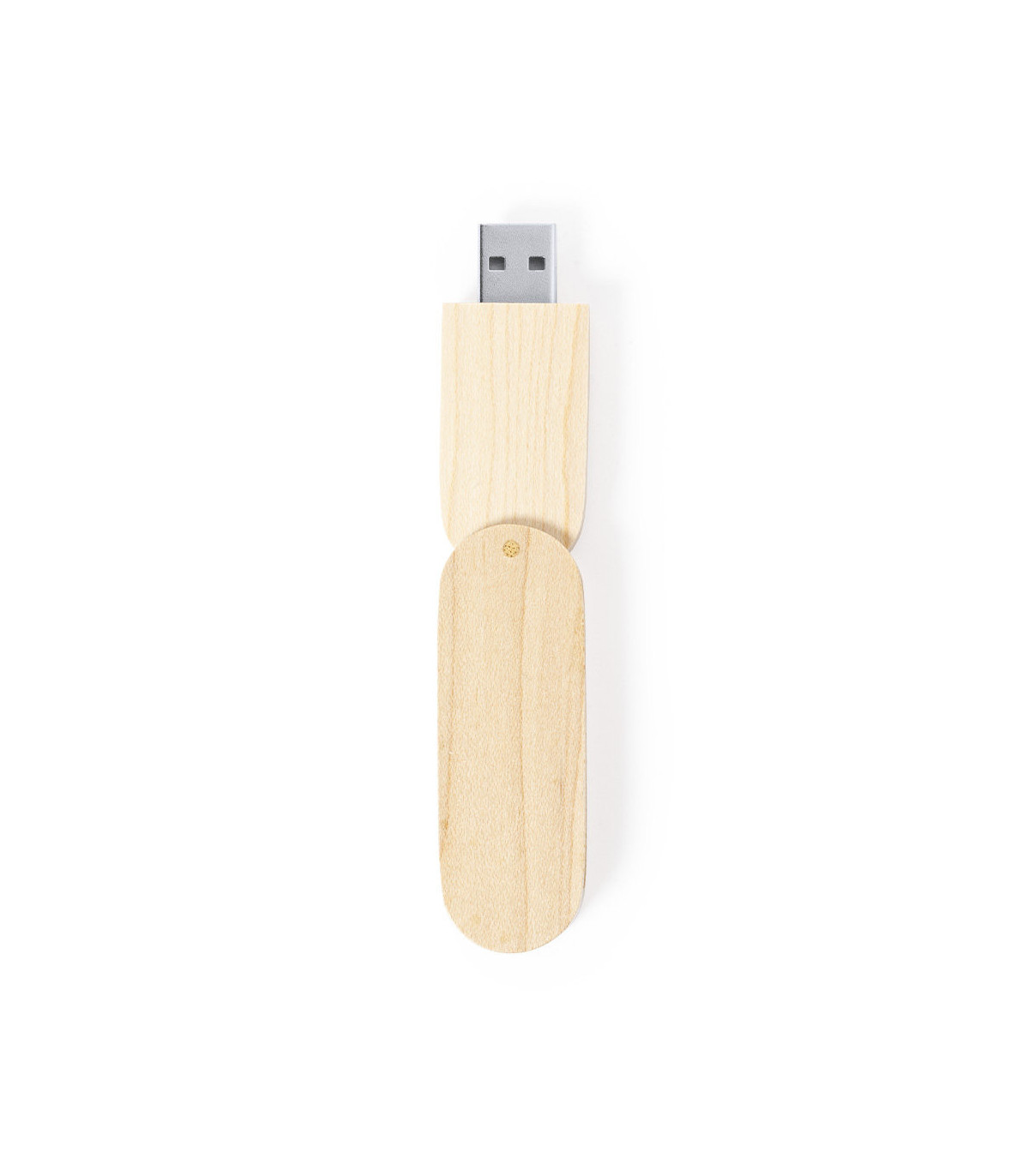 Memoria USB de línea nature plegable, de 16GB de capacidad. Fabricada en madera, para así fomentar la utilización de materiales naturales. Presentada en atractiva caja de diseño eco.