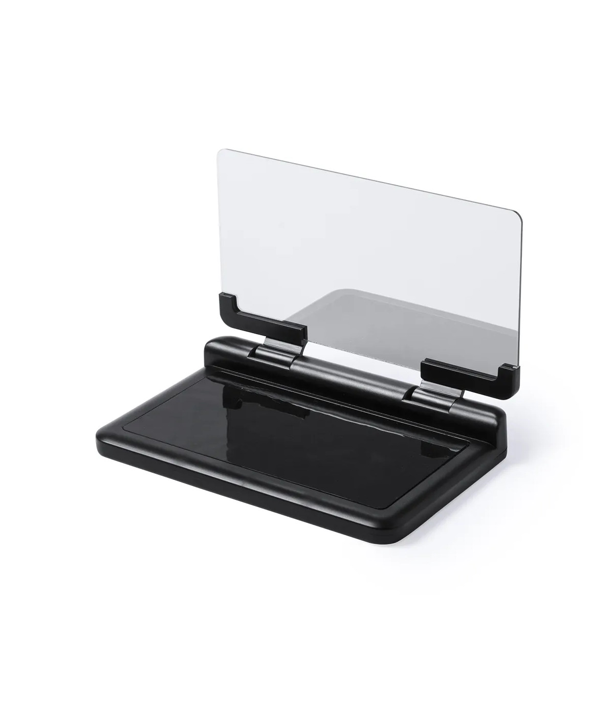 Pantalla soporte para automóvil. Con espejo duplicador de imagen ajustable y superficie anti deslizante ultra adherente para salpicadero y smartphone. Presentado en atractiva caja de diseño.