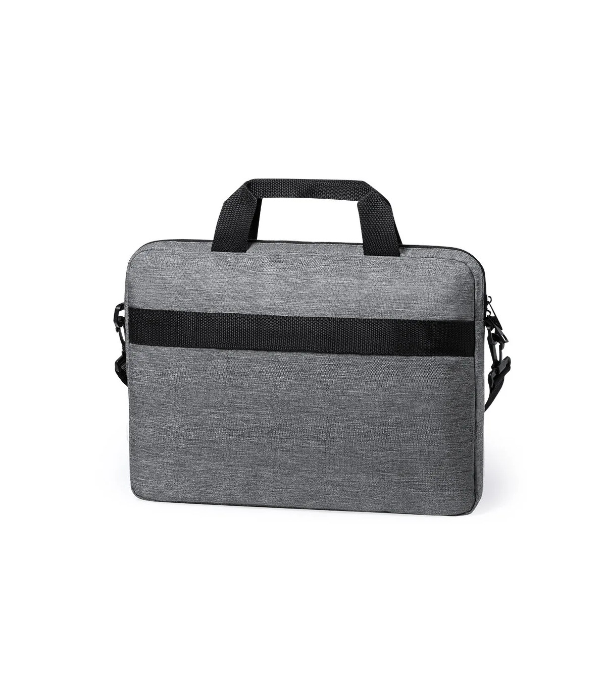 Elegante portadocumentos de línea nature en resistente 600D RPET efecto melange, elaborado a partir de plástico reciclado para así fomentar la reutilización de residuos plásticos y contribuir a la sostenibilidad del planeta. Detalles en negro, incluye com