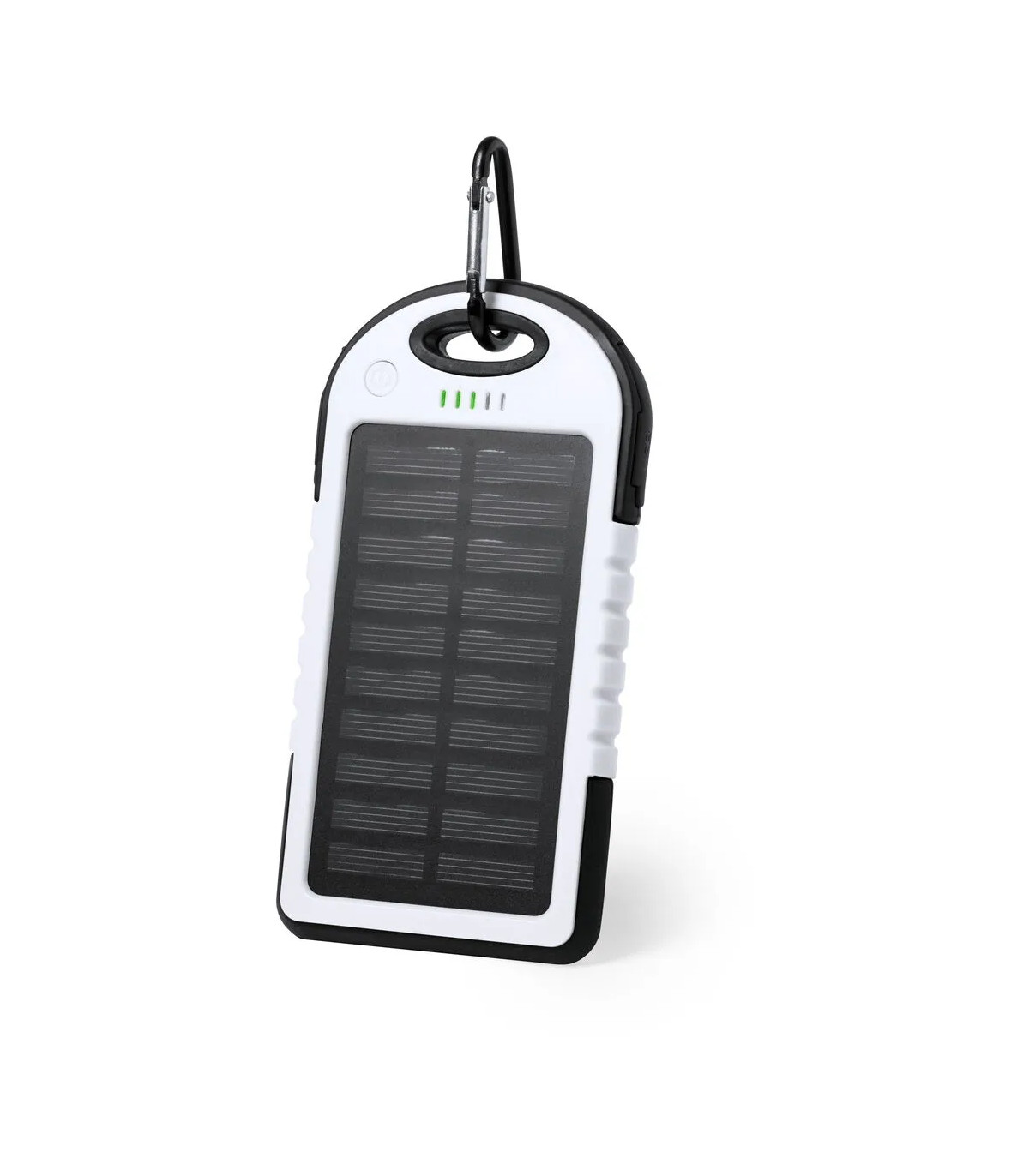 Resistente batería auxiliar externa de recarga solar, resistente a las salpicaduras de agua y de gran capacidad de carga -4.000 mAh-. Con recubrimiento de silicona y de corte deportivo, está especialmente diseñada para actividades al aire libre en las que no hay posibilidad de acceso a una fuente de recarga eléctrica. Dispone de salida USB dual para cargar dos dispositivos simultáneamente, LED indicadores de estado de carga y potente luz LED de señalización SOS, Diseñado para usar en caso de situaciones de emergencia. Con mosquetón de transporte de aluminio y resistente cable micro USB incluido. Disponible en extensa gama de colores Presentada en atractiva caja de diseño. Las capacidades mostradas en todas nuestras baterías auxiliares externas son reales, incorporando todas ellas baterías de grado A y no recicladas, con una vida útil de al menos 500 ciclos de carga y según normativa CE. Además, están fabricadas conforme a los estándares RoHS y en cumplimiento con los siguientes requisitos de seguridad: Sistema de protección contra sobrecarga del power bank. Sistema de protección contra descarga completa que proporciona una mayor durabilidad del power bank. Sistema de bloqueo para evitar cortocircuitos. Sistema de transferencia de carga constante, acorde con la capacidad del dispositivo de destino.