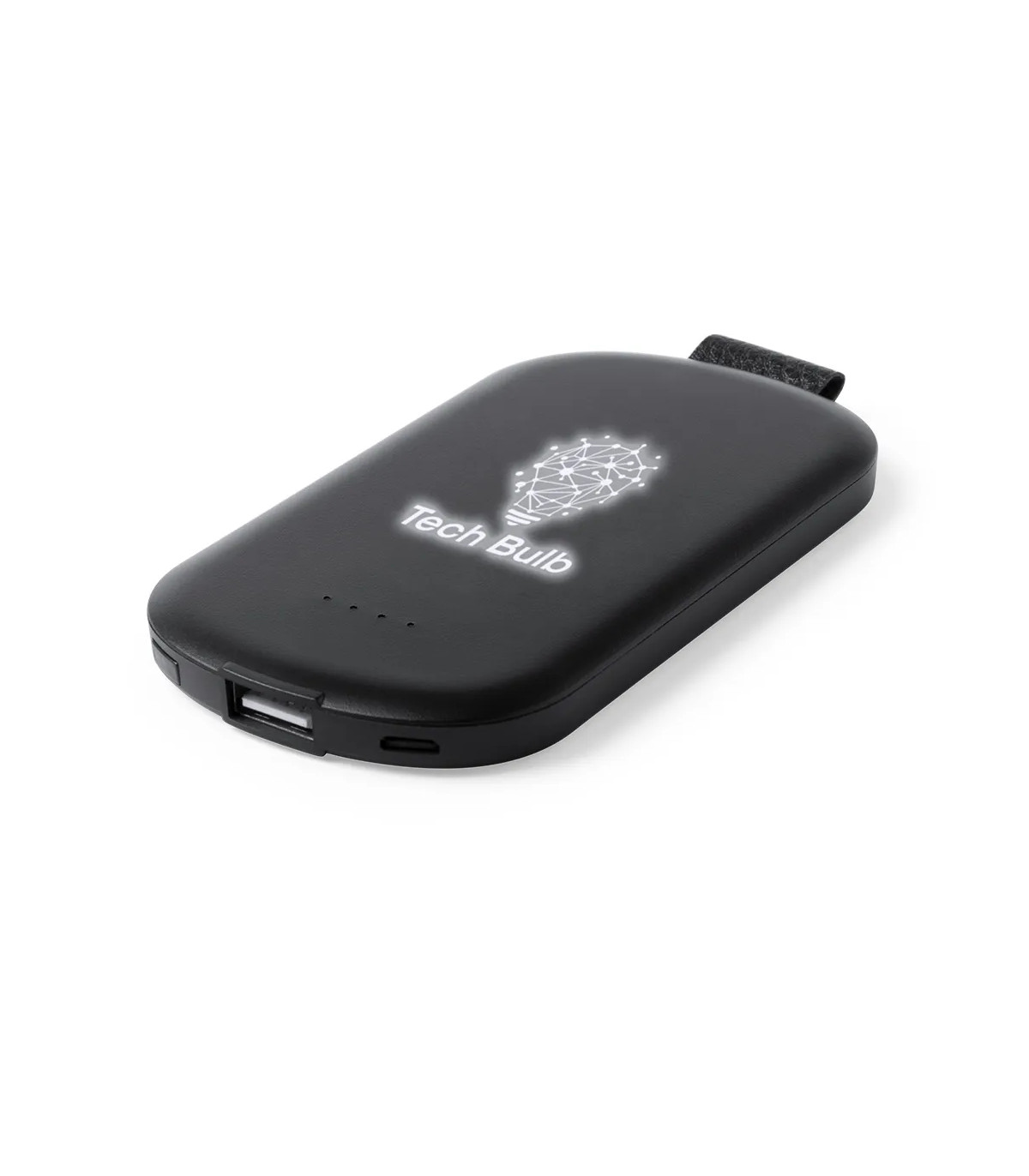 Batería auxiliar externa de 2.500 mAh de capacidad de carga. Con luz led interior y un recubrimiento exterior especialmente diseñado para marcaje en láser, con el que conseguirá que su publicidad o marca quede iluminada con luz blanca. Indicador de estado de carga, con salida USB y entrada micro USB -cable incluido-. Con amplia superficie de marcaje y presentada en atractiva caja de diseño. Las capacidades mostradas en todas nuestras baterías auxiliares externas son reales, incorporando todas ellas baterías de grado A y no recicladas, con una vida útil de al menos 500 ciclos de carga y según normativa CE. Además, están fabricadas conforme a los estándares RoHS y en cumplimiento con los siguientes requisitos de seguridad: Sistema de protección contra sobrecarga del power bank. Sistema de protección contra descarga completa que proporciona una mayor durabilidad del power bank. Sistema de bloqueo para evitar cortocircuitos. Sistema de transferencia de carga constante, acorde con la capacidad del dispositivo de destino.