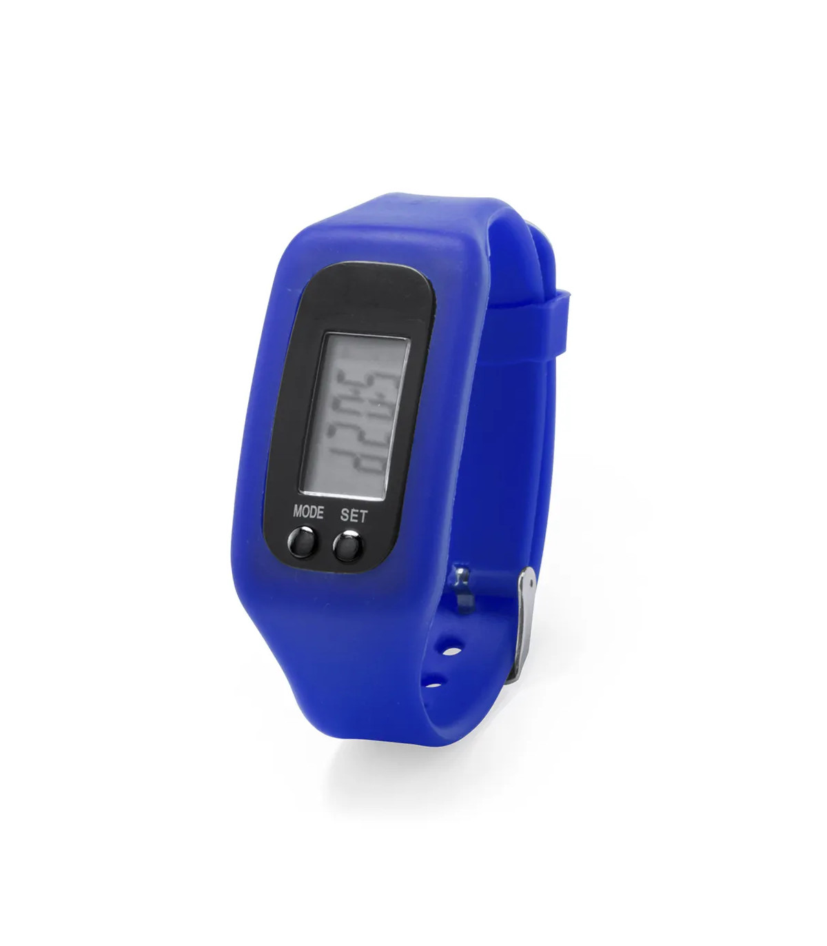 Desenfadado reloj digital de corte deportivo con pantalla LCD rectangular, correa ajustable de silicona y resistente a las salpicaduras de agua. Indicado para todo tipo de actividades deportivas y de ocio. Con pila de botón incluida y presentado en atractiva caja de diseño.