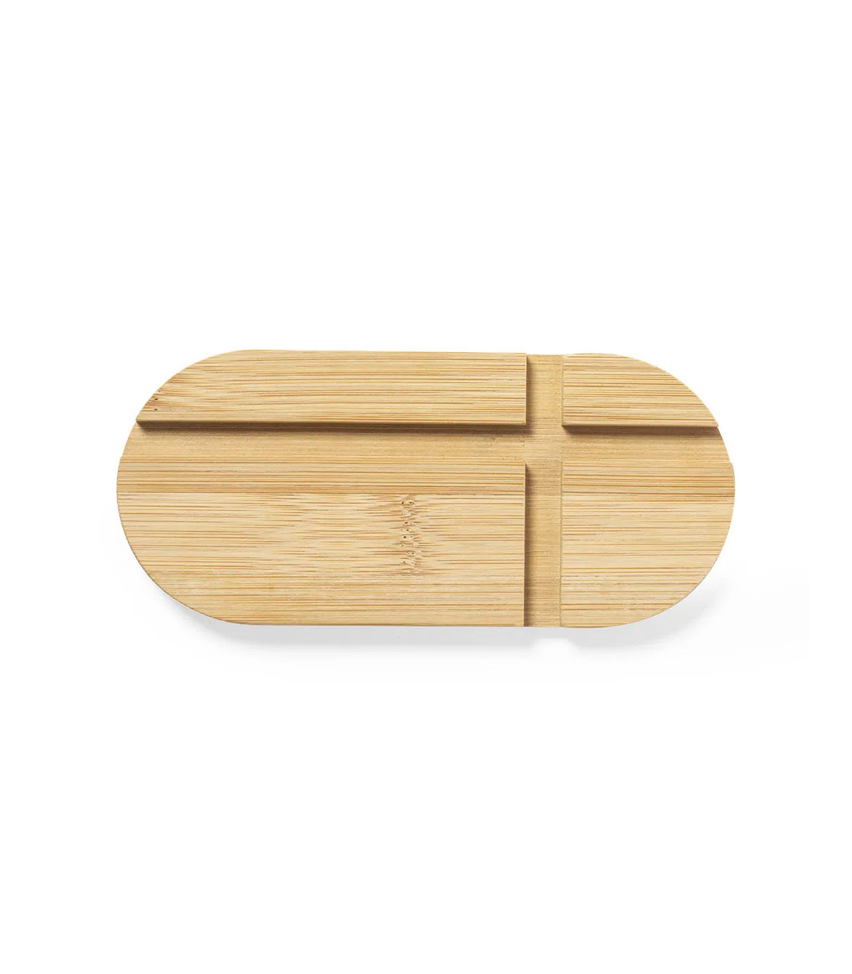 Original y sencillo soporte de línea nature para smartphone y tablet. Fabricado en bambú procedente de cortes naturales. Presentado en atractiva caja individual de diseño eco.