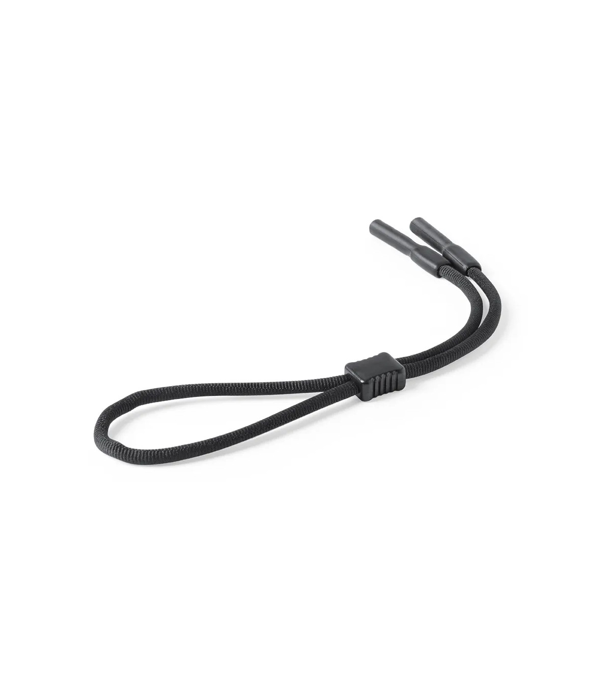Original cinta para gafas con enganches de seguridad para todo tipo de patillas. En resistente poliéster de vivos colores. Accesorio de ajuste de seguridad con superficie lisa para marcaje.