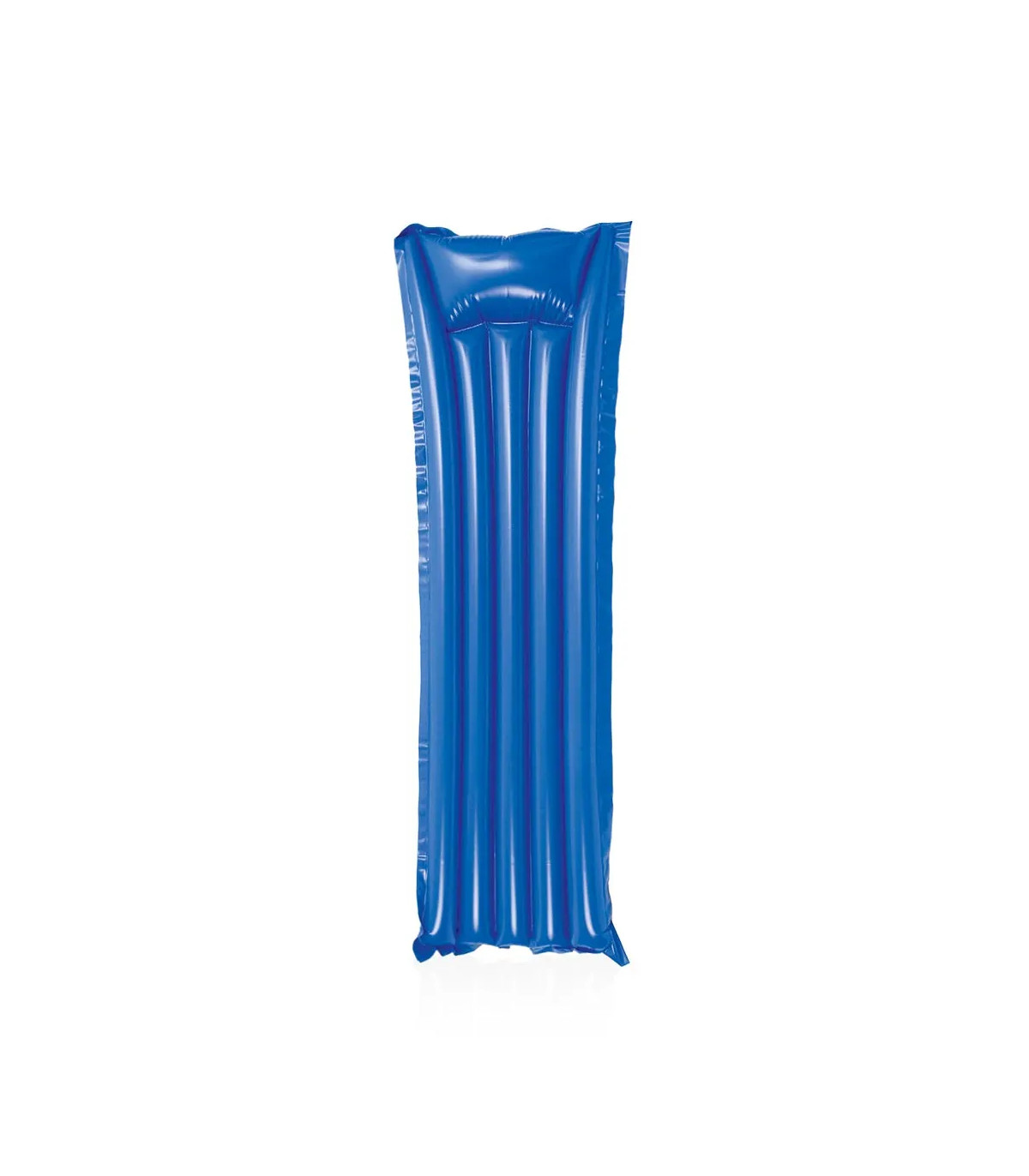 Colchoneta inflable de 180cm en resistente PVC de vivos colores. Presentada con plegado especial para fácil impresión.